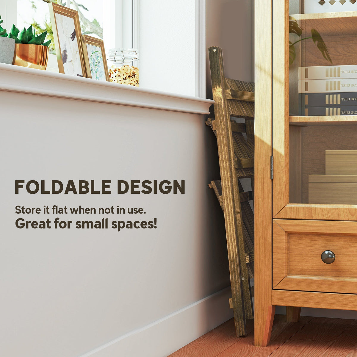 Outsunny Wooden Folding Flower Pot Stand 3 Tier Garden Planter Display Ladder Gardener Storage Shelves Rack Herb Holder (80L x 37W x 93H cm) - Brown