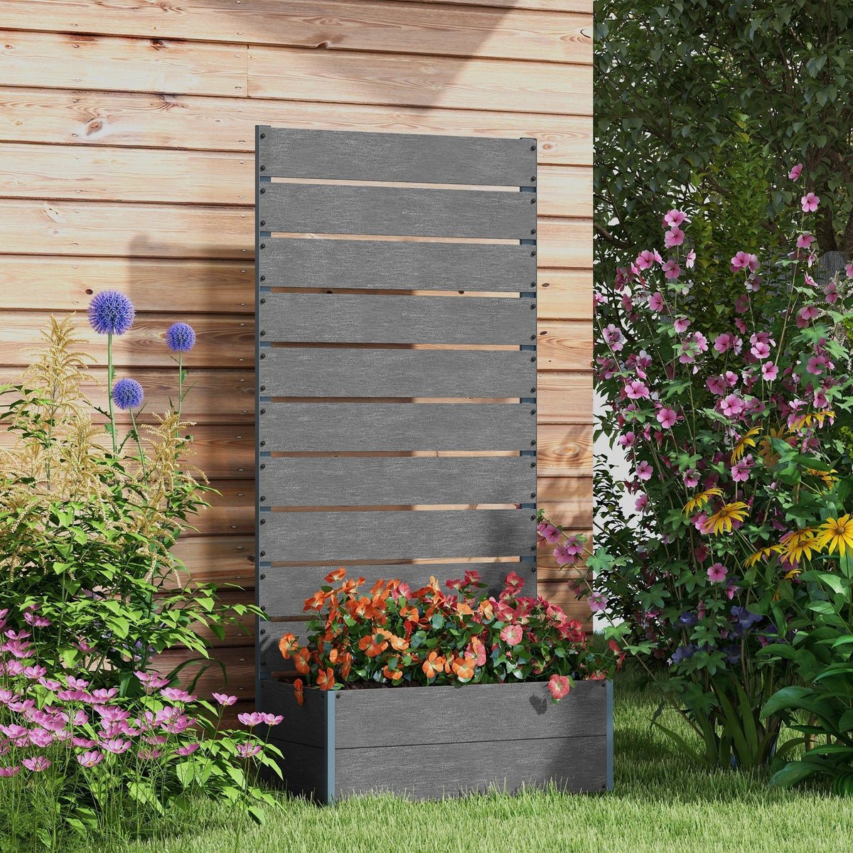 Outsunny Garden Planter with Trellis Wooden Planter for Garden & Patio Family Use, Grey - Dark Grey