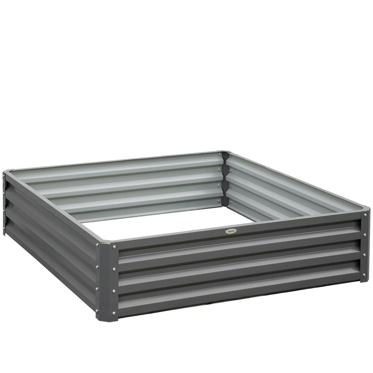 Outsunny 432L Square Raised Garden Bed Box Steel Frame for Vegetables, Flowers and Herbs, 120 x 120 x 30cm, Light Grey - Light Grey