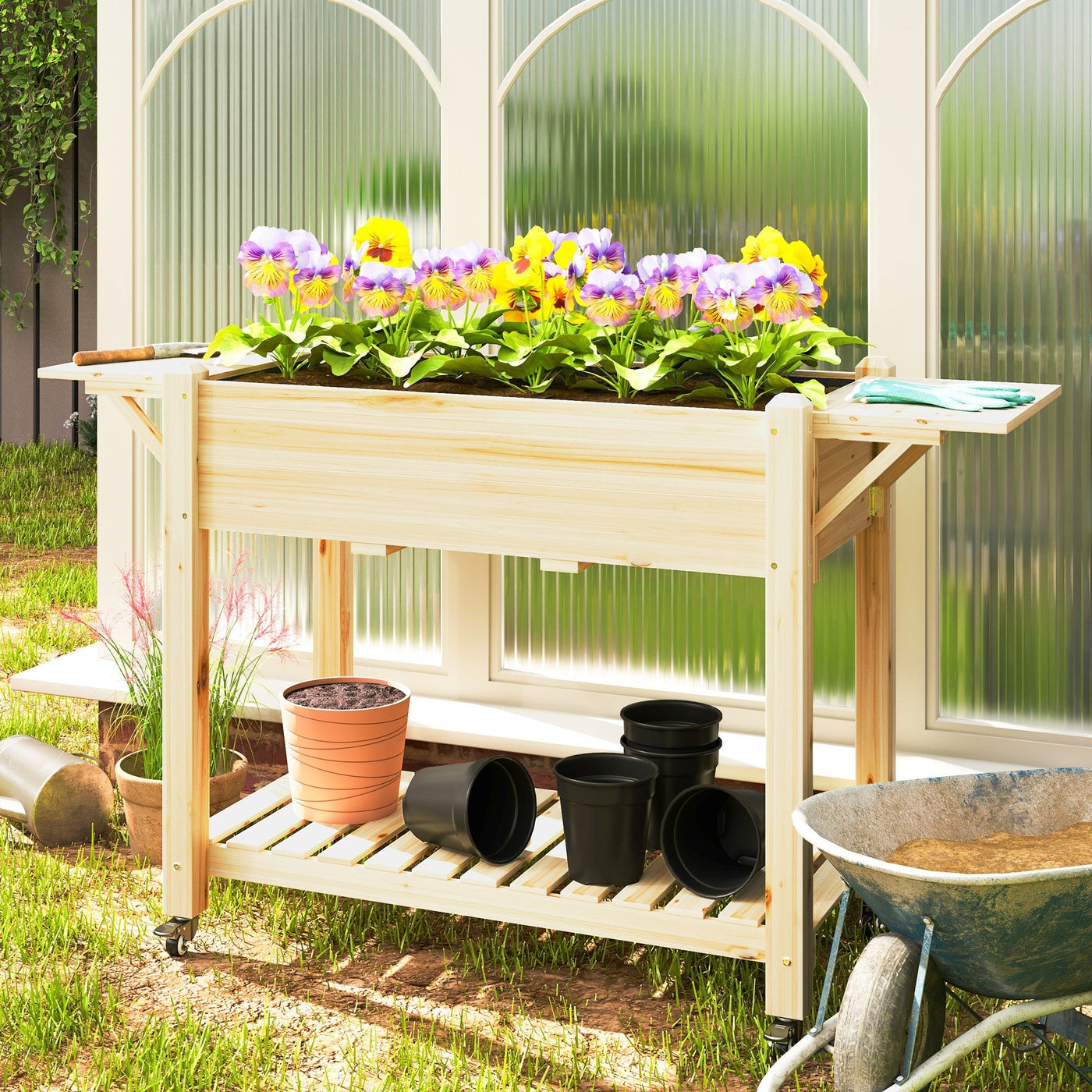 Outsunny 46 x 94cm Wooden Raised Planter, with Shelves - Natural Finish - Natural wood finish
