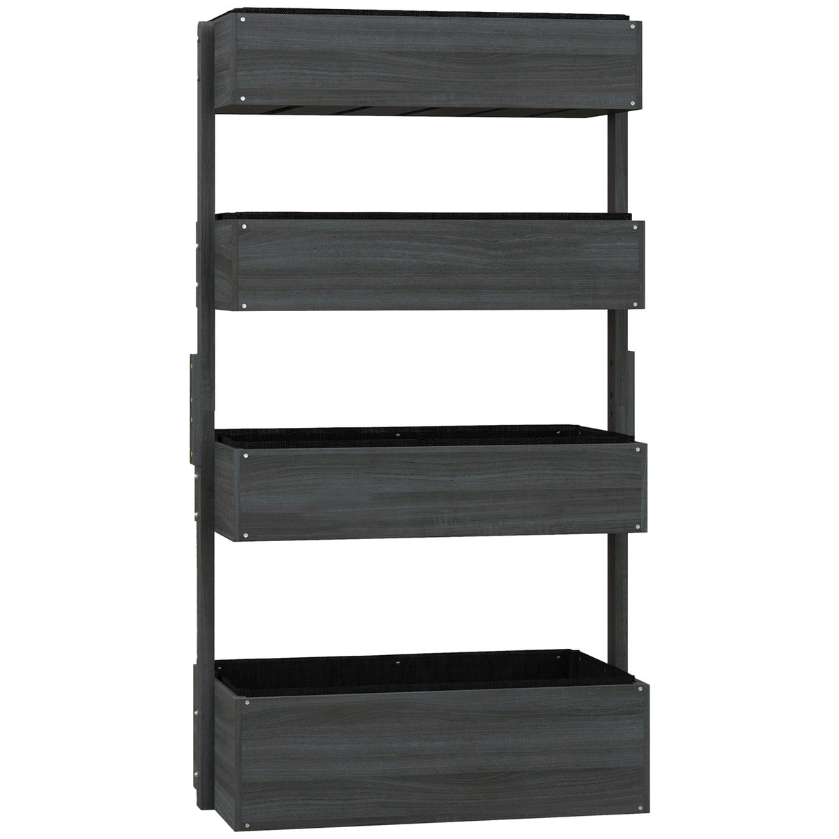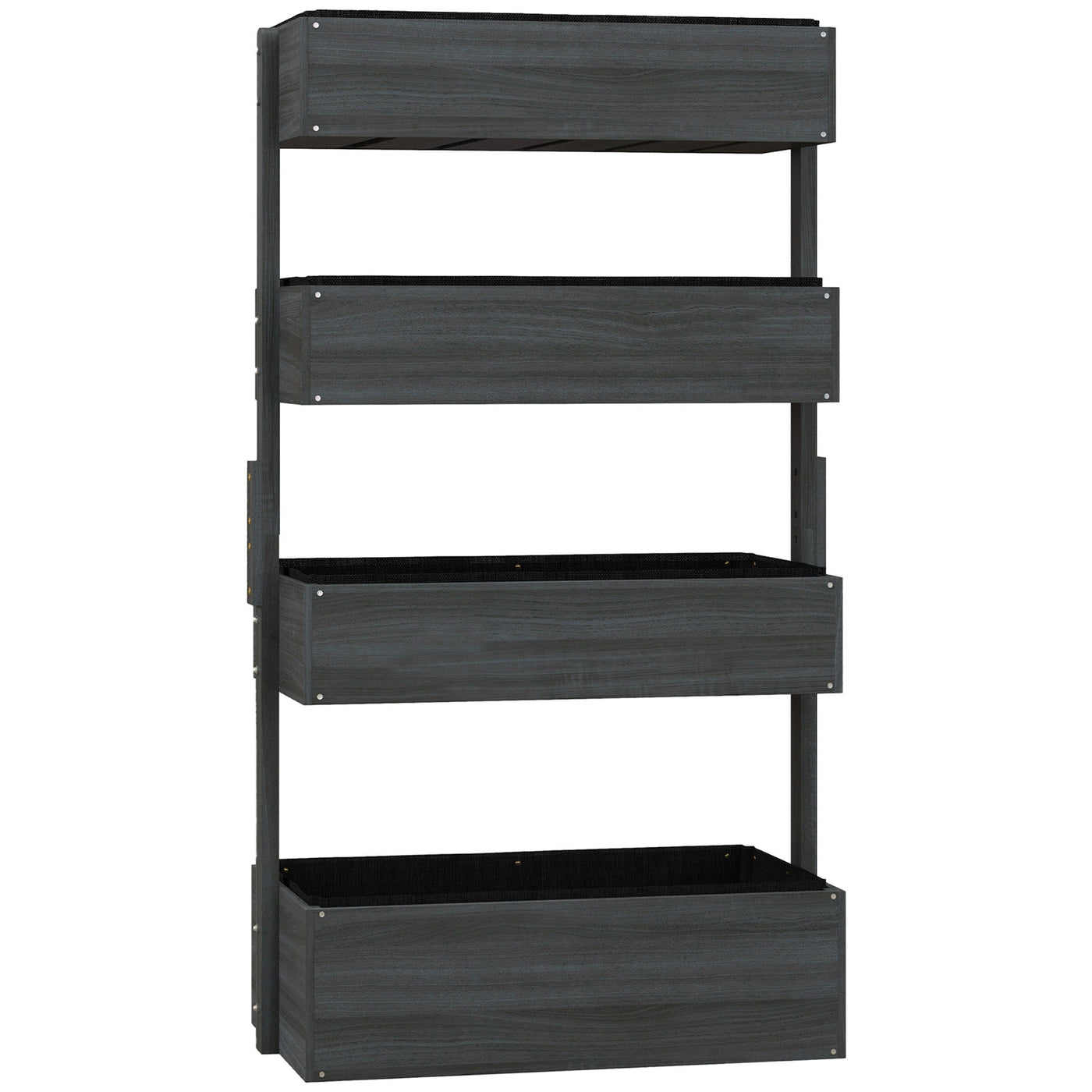 Outsunny Four-Tier Basket Wooden Plant Stand - Grey - Grey