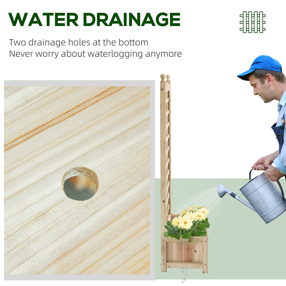 Outsunny Garden Planters with Trellis for Climbing Vines, Wood Raised Beds for Garden, Flower Pot, Indoor Outdoor, Natural - Natural wood finish
