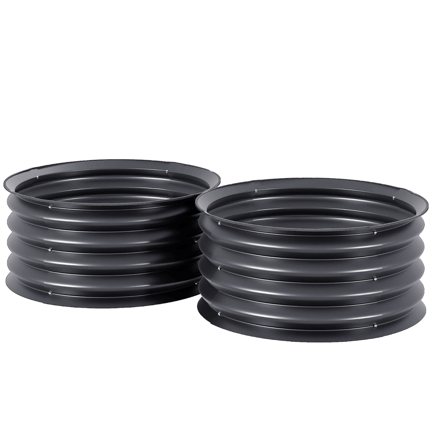 Outsunny Set of 2 Raised Garden Bed, Metal Planter Box with Safety Edging, Easy-to-assemble Stock Tank, Dark Grey - Dark Grey