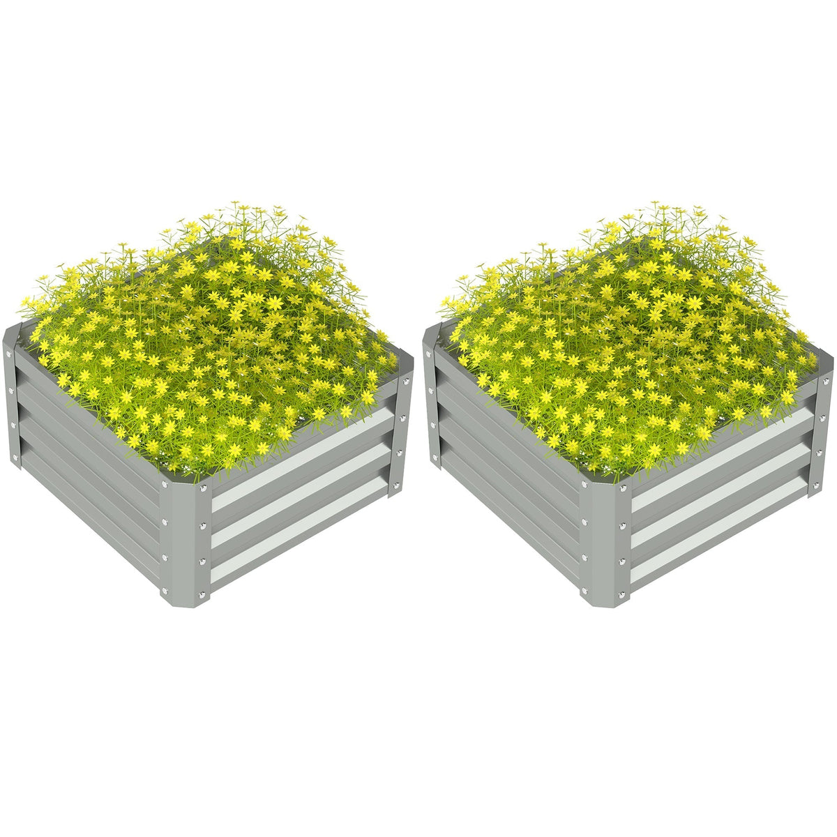 Outsunny Set of Two 60 x 60cm Steel Planter Boxes - Light Grey - Light Grey