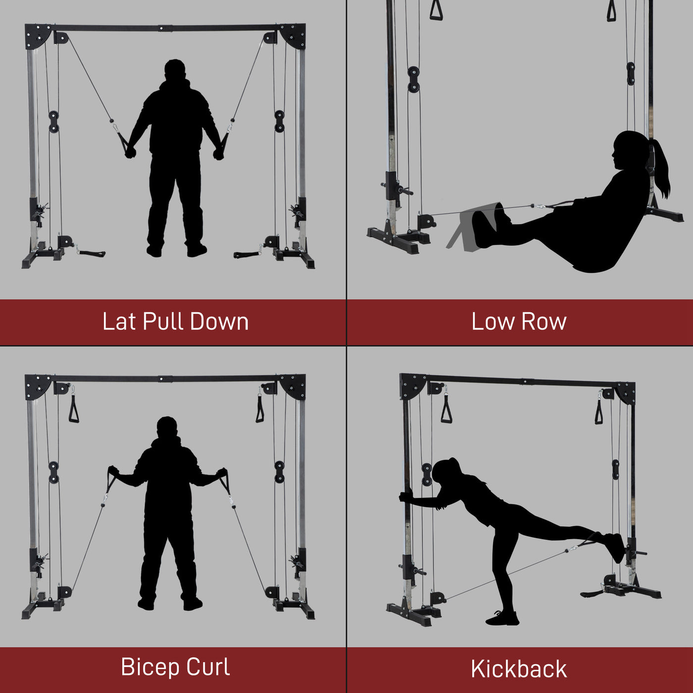 SPORTNOW Multi Home Gyms with Cable Pulley System, Cable Crossover Machine with 4 Handles for Full Body Strength Training, Power Rack for Home Workout, Black - Black