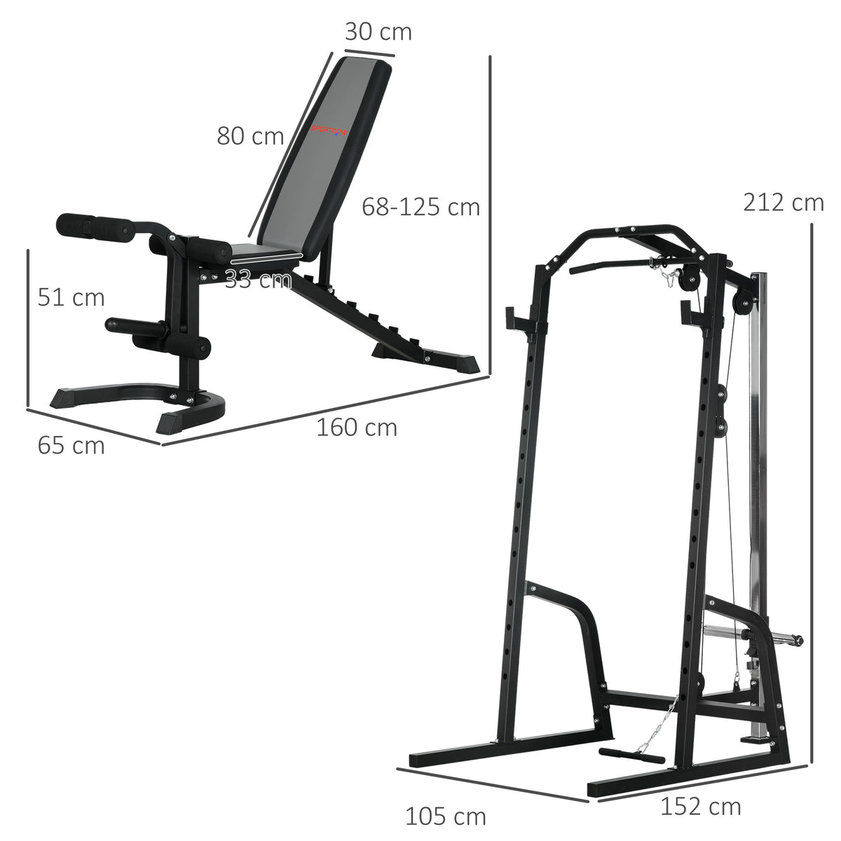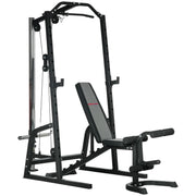 SPORTNOW Smith Machine & Cable Pulley System with Adjustable Weight Bench, Multifunction Home Gym Power Rack with Lat Pull Down System, Barbell Rack for Full Body Training, Black - Black