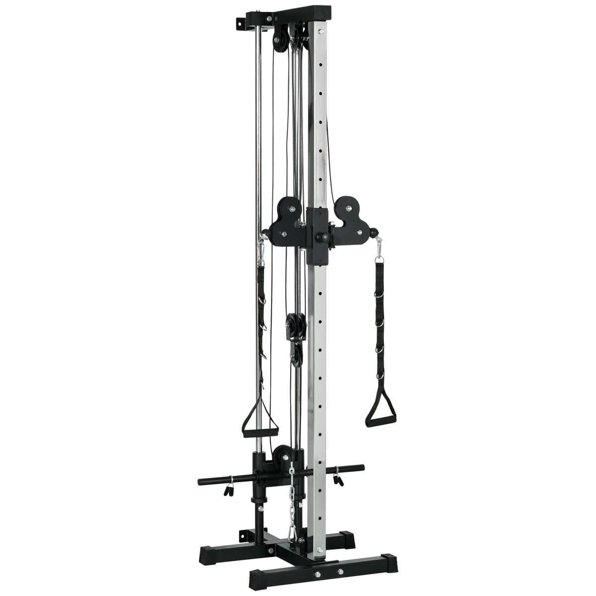 SPORTNOW Wall Mount Cable Machine, 15 Positions Adjustable Cable Crossover Machine Dual Pulley System for Home Gym - Black