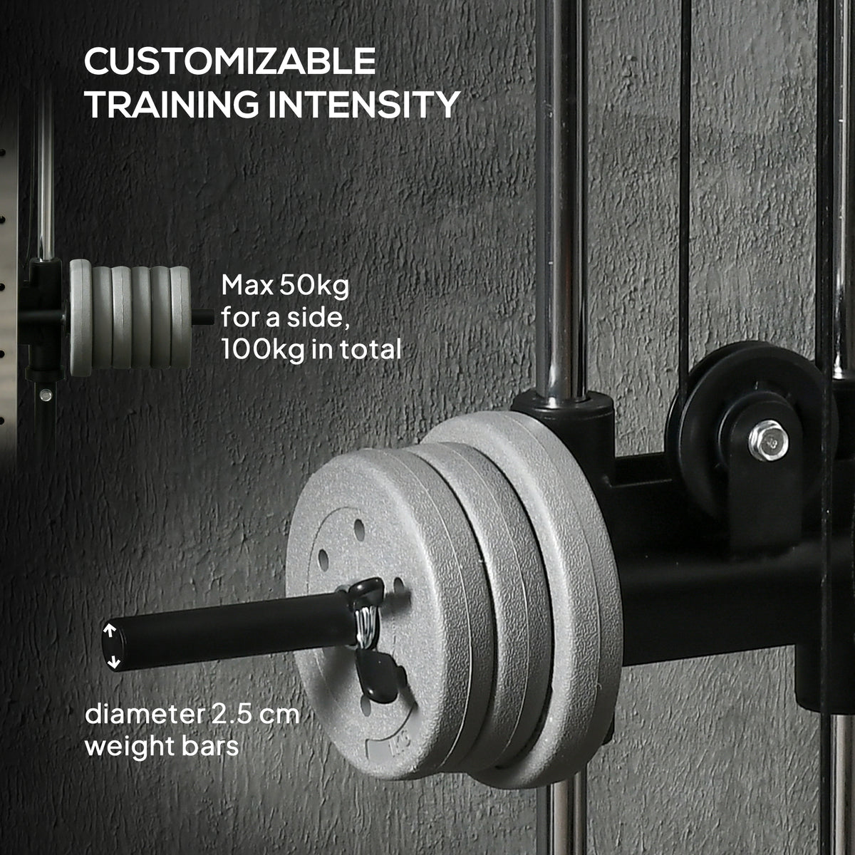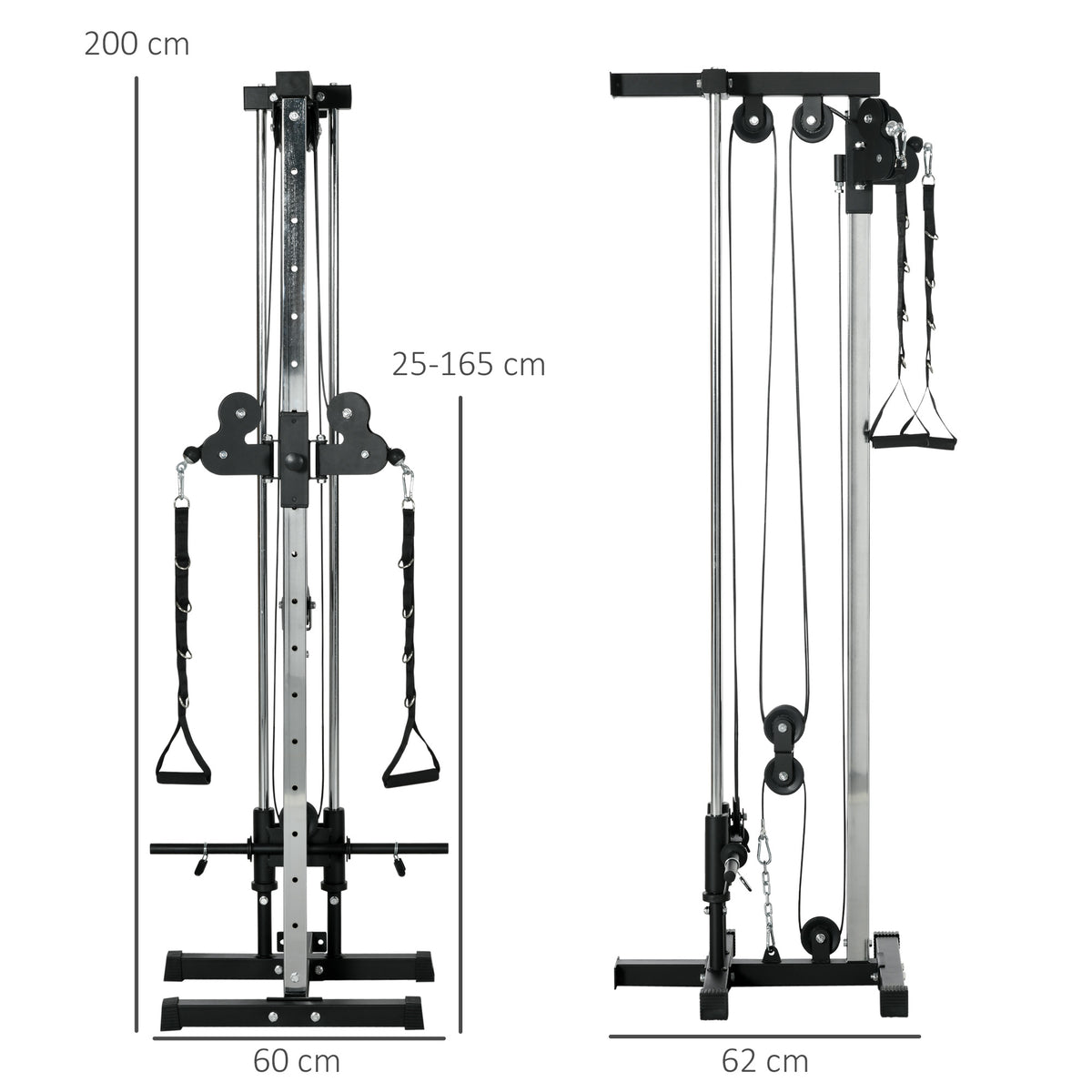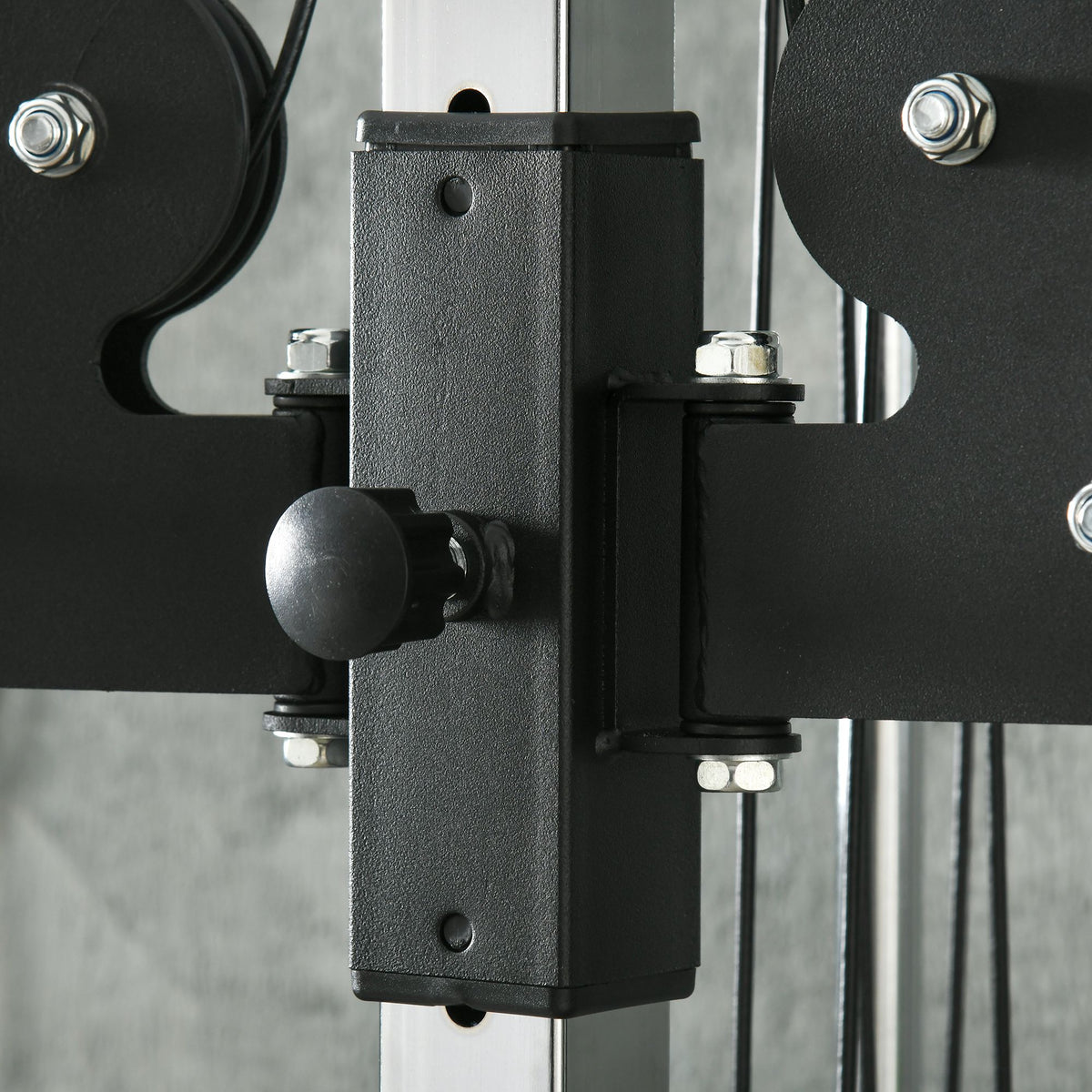 Our weight cable pulley system lets you target multiple muscle groups by changing the height of the dual cable pulley...