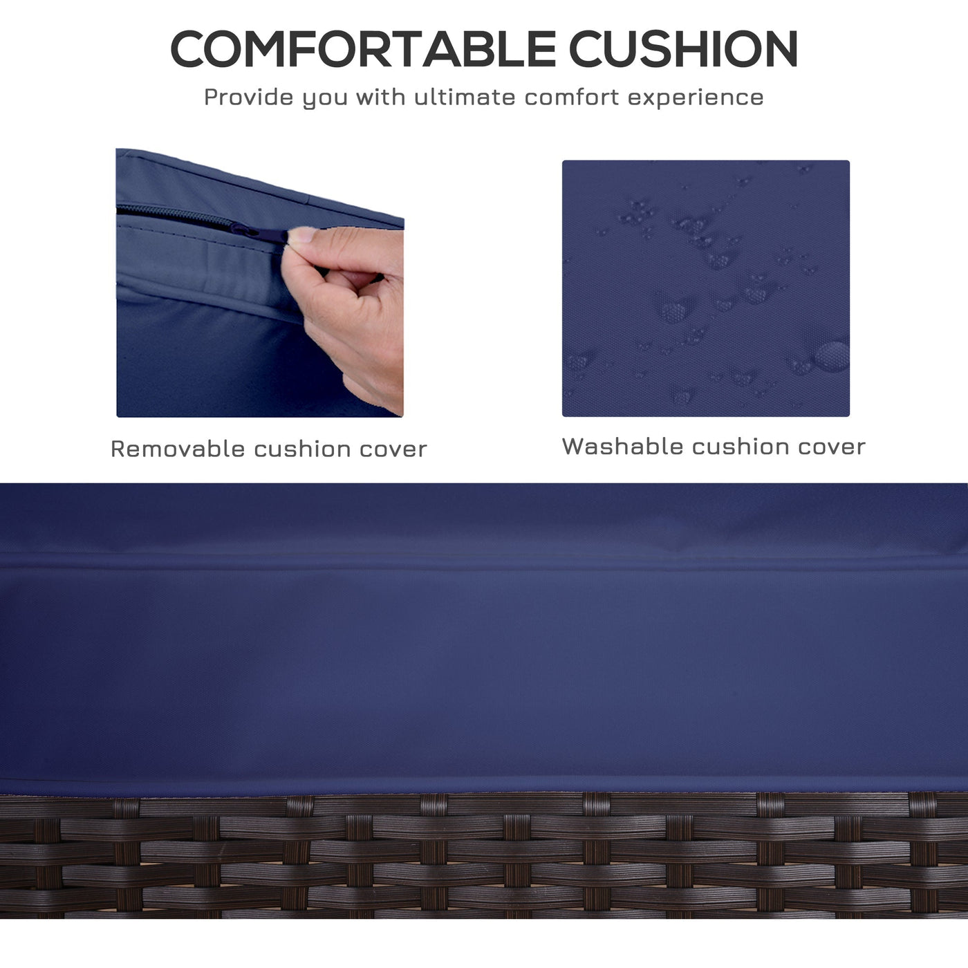 Outsunny 3 Pieces Rattan Bistro Set with Furniture Cover, Wicker Garden Furniture Set, Glass Top Coffee Table and Chairs with Cushions for Outdoor, Patio, Balcony, Dark Blue - Dark Blue