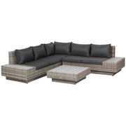 Outsunny 4 PCs Rattan Garden Furniture Outdoor Sectional Corner Sofa and Coffee Table Set Conservatory Wicker Weave Furniture with Armrest and Cushions - Light Grey - Light Grey