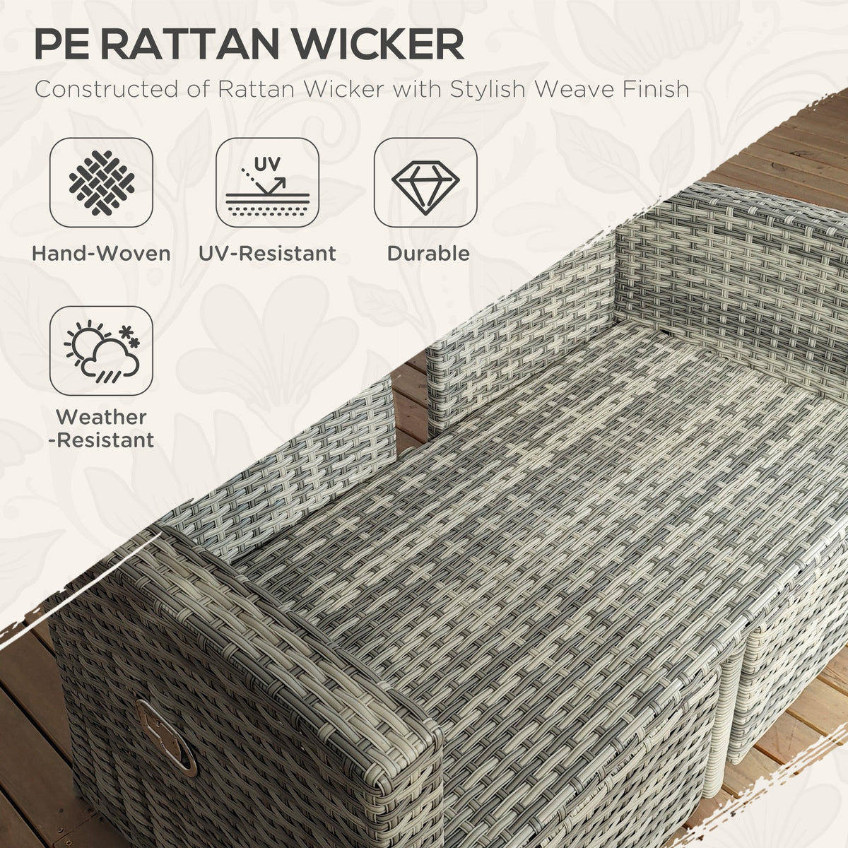 Outsunny 4 Piece Rattan Garden Furniture Set Outdoor Sofa Sectional Set with Glass Top Table for Poolside, Light Grey - Light Grey