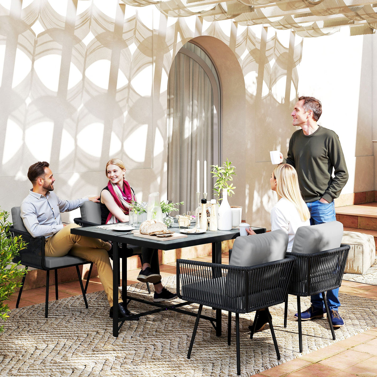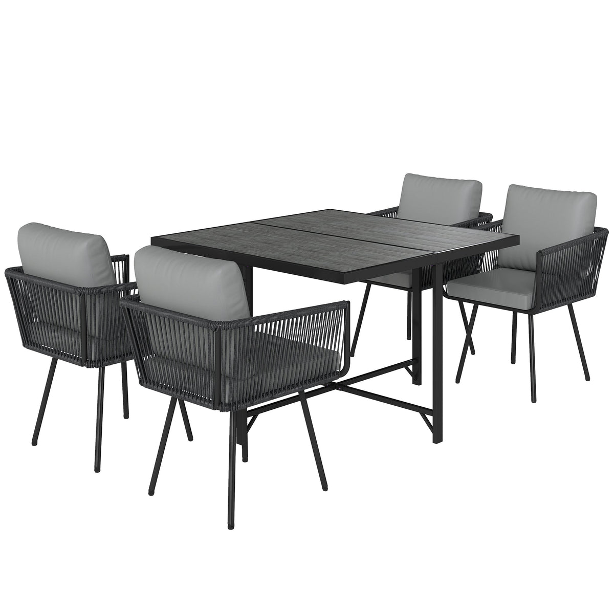 Outsunny 5 Piece Garden Furniture Set, Garden Dining Set with Wood-Plastic Table and 4 Stackable Chairs, Light Grey - Light Grey