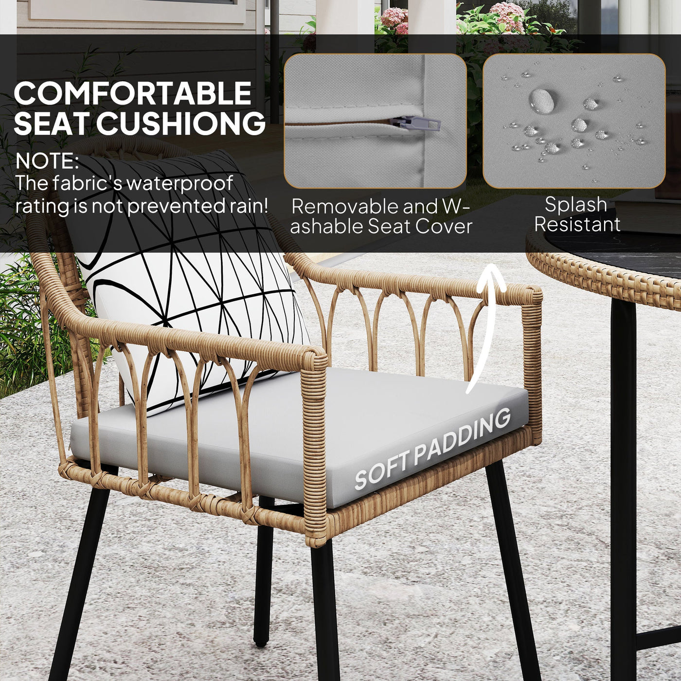 Outsunny 5 Piece Patio Rattan Dining Set, Wicker Garden Table and Chairs w/ Removable Seat & Back Cushions, Round Tempered Glass Tabletop, Parasol Hole, Outdoor Furniture Conservatory Set, Light Brown - Brown