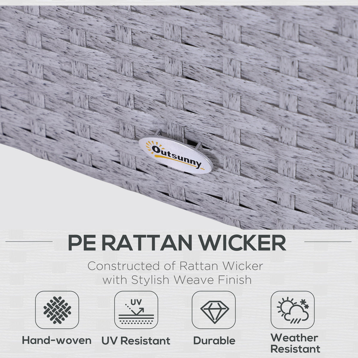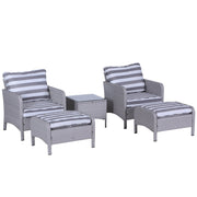 Outsunny 5 Pieces PE Rattan Garden Furniture Set with 10cm Thick Padded Cushions, Wicker Weave Outdoor Seating Chairs with 2 Armchairs, 2 Stools, Glass Top Table, Grey and White - Grey, White