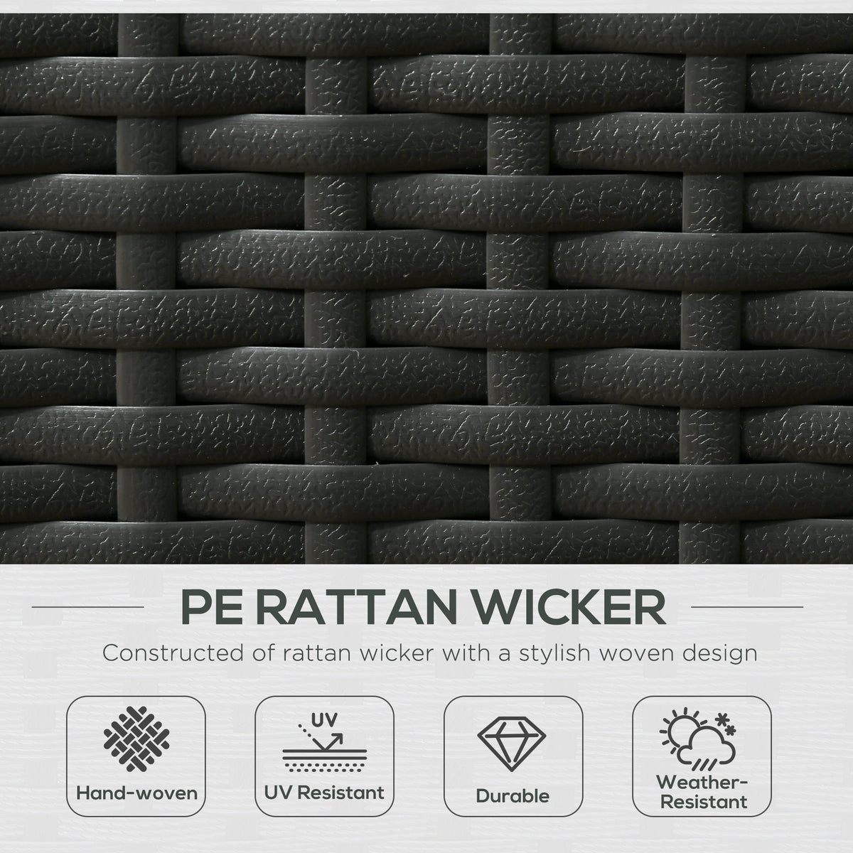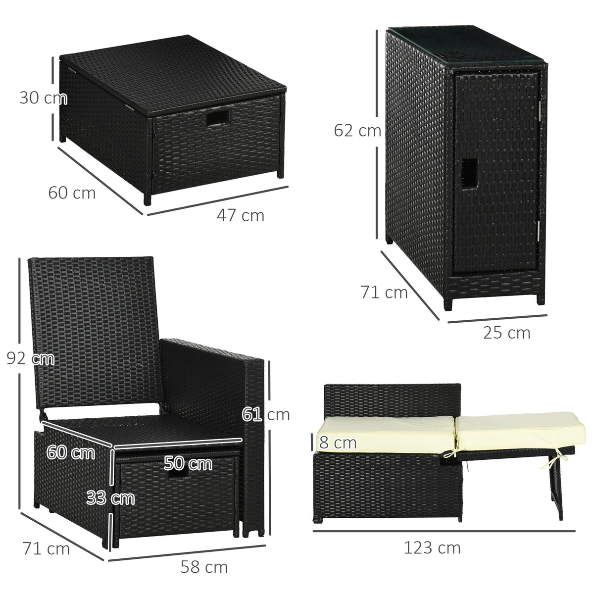 Outsunny 5PC PE Rattan Sun Lounger, Outdoor Wicker 5-level Adjustable Recliner Sofa Bed with Storage Side Table and Footstools, for Patio, Garden, Poolside, Black - Black