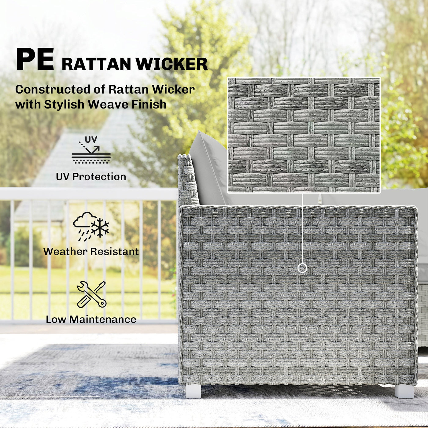 Outsunny 6 Seater Rattan Garden Furniture Set with 3 Sofas, 2 Footstools, Table, Patio Rattan Furniture Sofa Sets, Grey