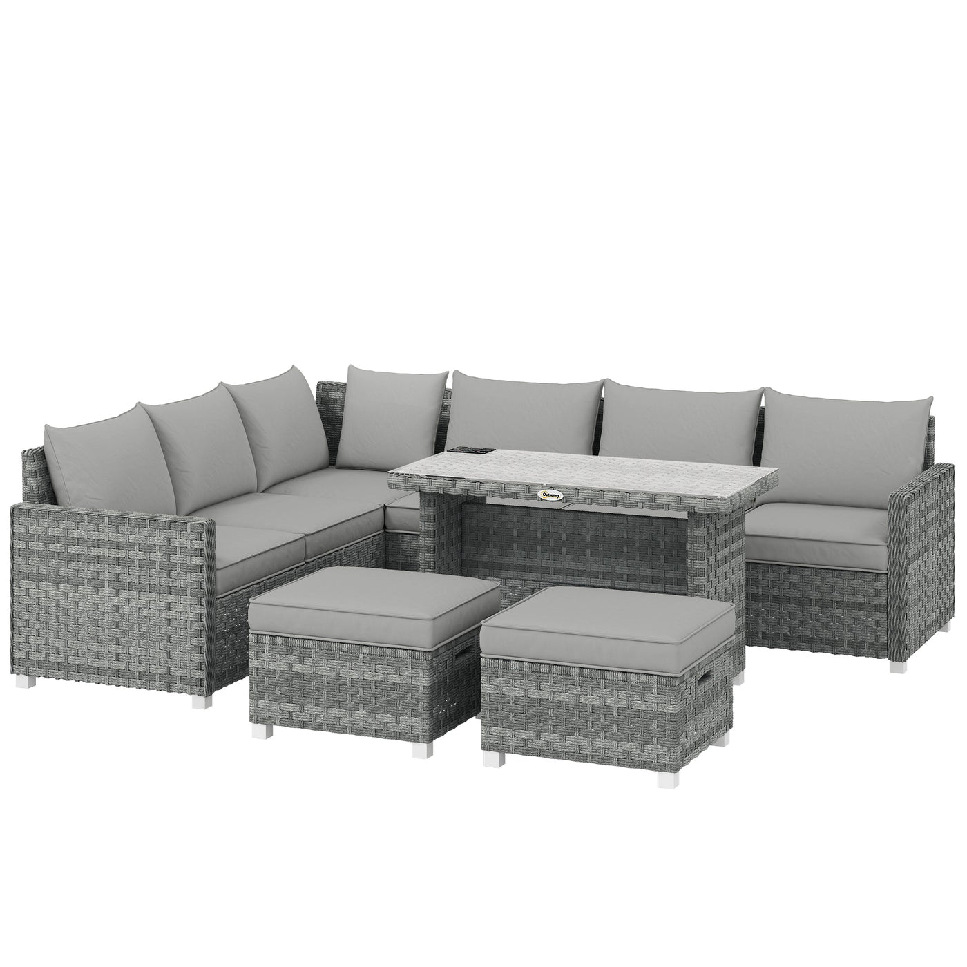 Outsunny 6 Seater Rattan Garden Furniture Set with 3 Sofas, 2 Footstools, Table, Patio Rattan Furniture Sofa Sets, Grey - Grey