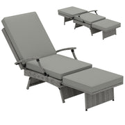 Outsunny 80° Reclining Rattan Lounger - Grey - Light Grey