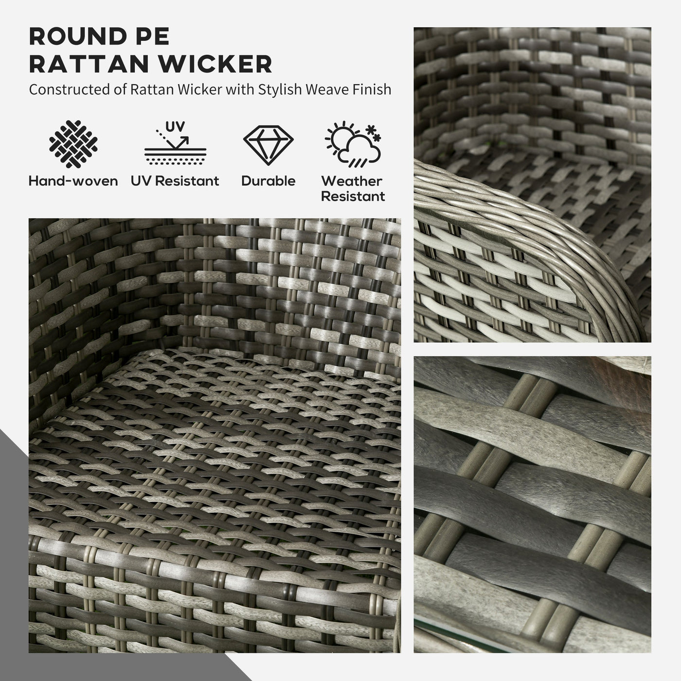 Outsunny Four-Piece Rattan Sofa Set, with Glass-Top Table - Mixed Grey - Grey