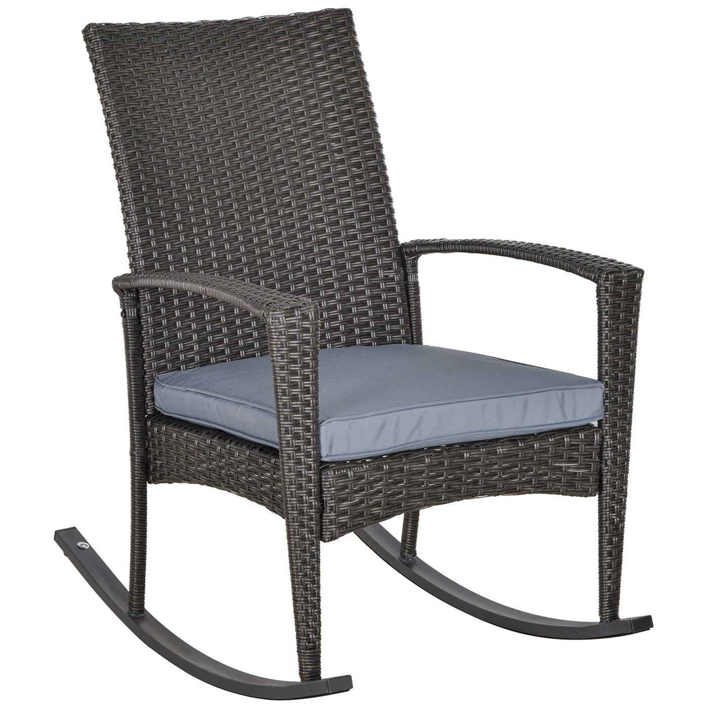 Outsunny Outdoor PE Rattan Rocking Chair, Garden Rocking Chair Set with Armrest and Cushion, Grey - Grey