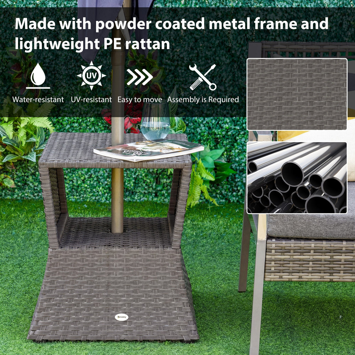 Outsunny Rattan Outdoor Coffee Table, Wicker Garden Patio Bistro Side Table with Umbrella Hole and Storage Space, Dark Grey - Dark Grey