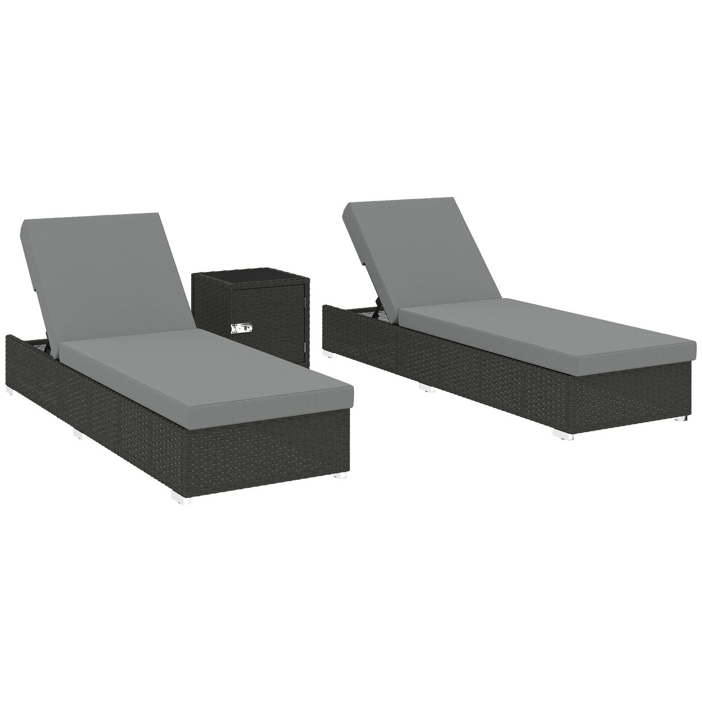 Outsunny Rattan Sun Loungers Set of 2 with Side Table, Garden Recliner Sunbeds with Adjustable Back, Cushions, Dark Grey - Dark Grey