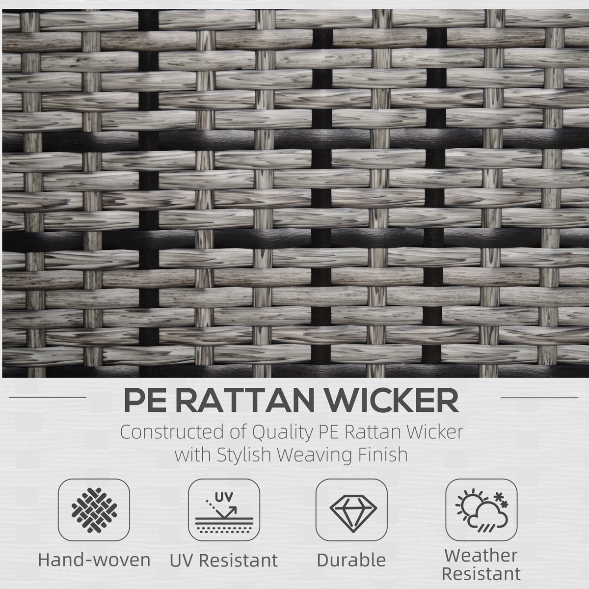 Outsunny Rattan Garden Armchair 10cm Cushion Outdoor Single Chair with Steel Frame, Grey - Grey