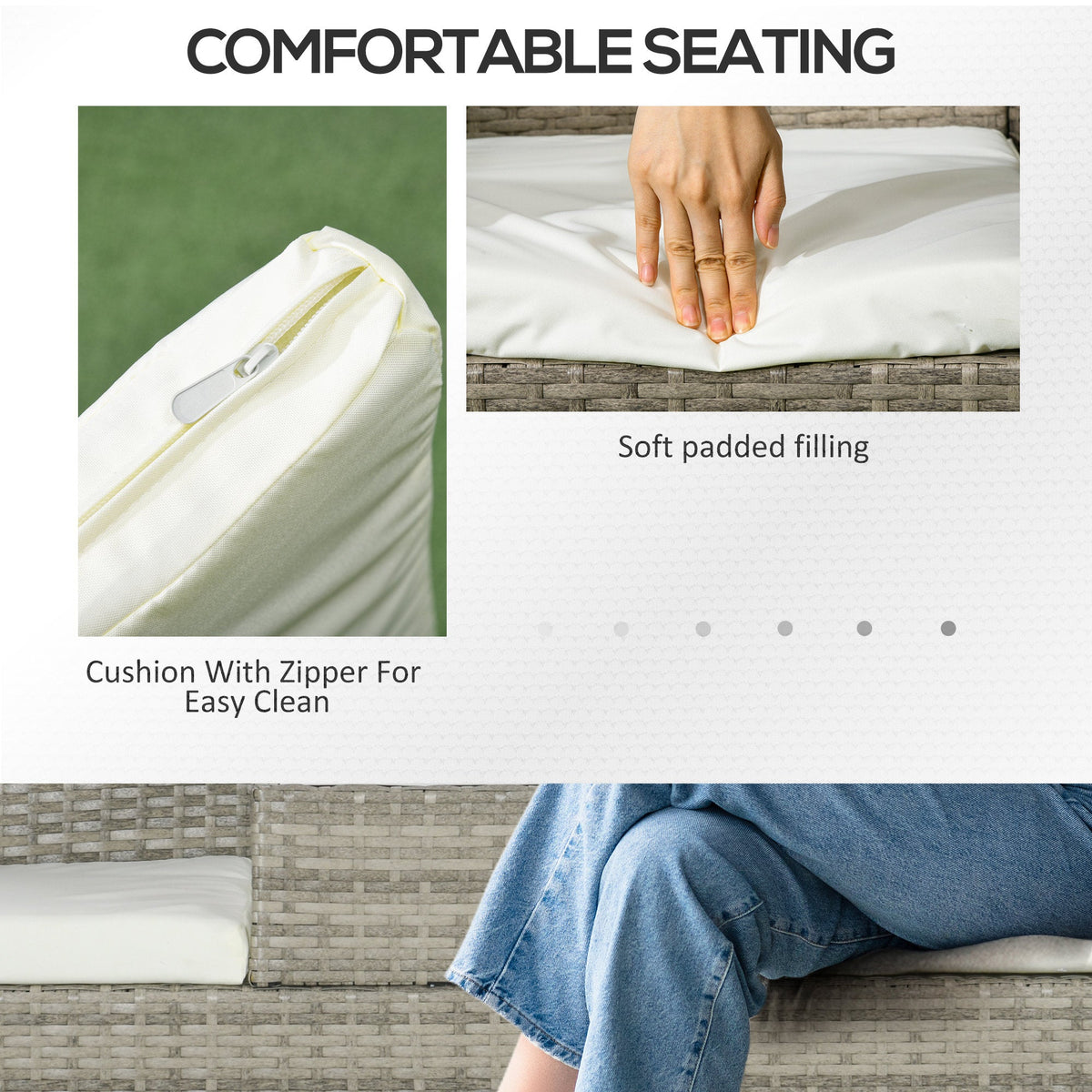 Outsunny Two-Seat Rattan Chair, with Middle Table - Grey - Mixed Grey/Cream White