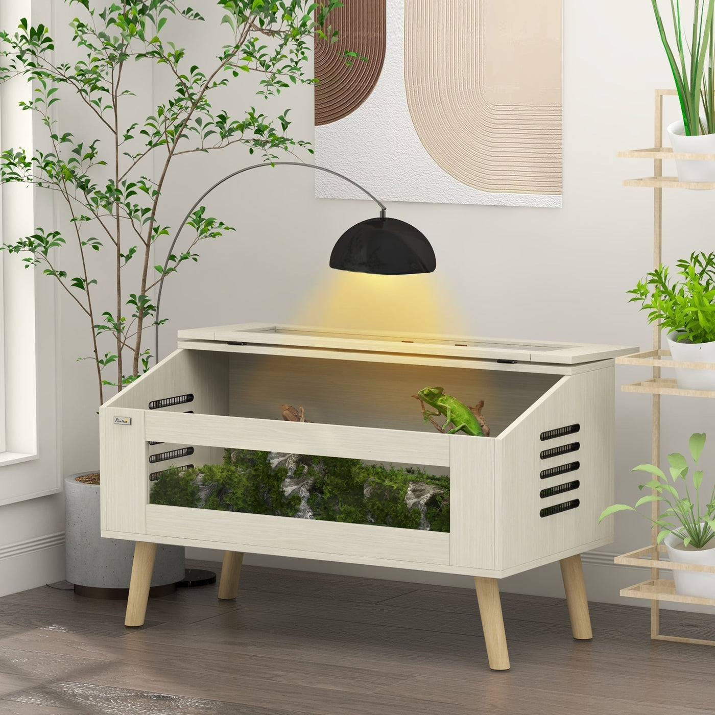 PawHut 140L Vivarium for Snakes, Lizards, Horned Frogs, Chameleons, Hamsters, Gerbils with Tempered Glass Windows - Oak