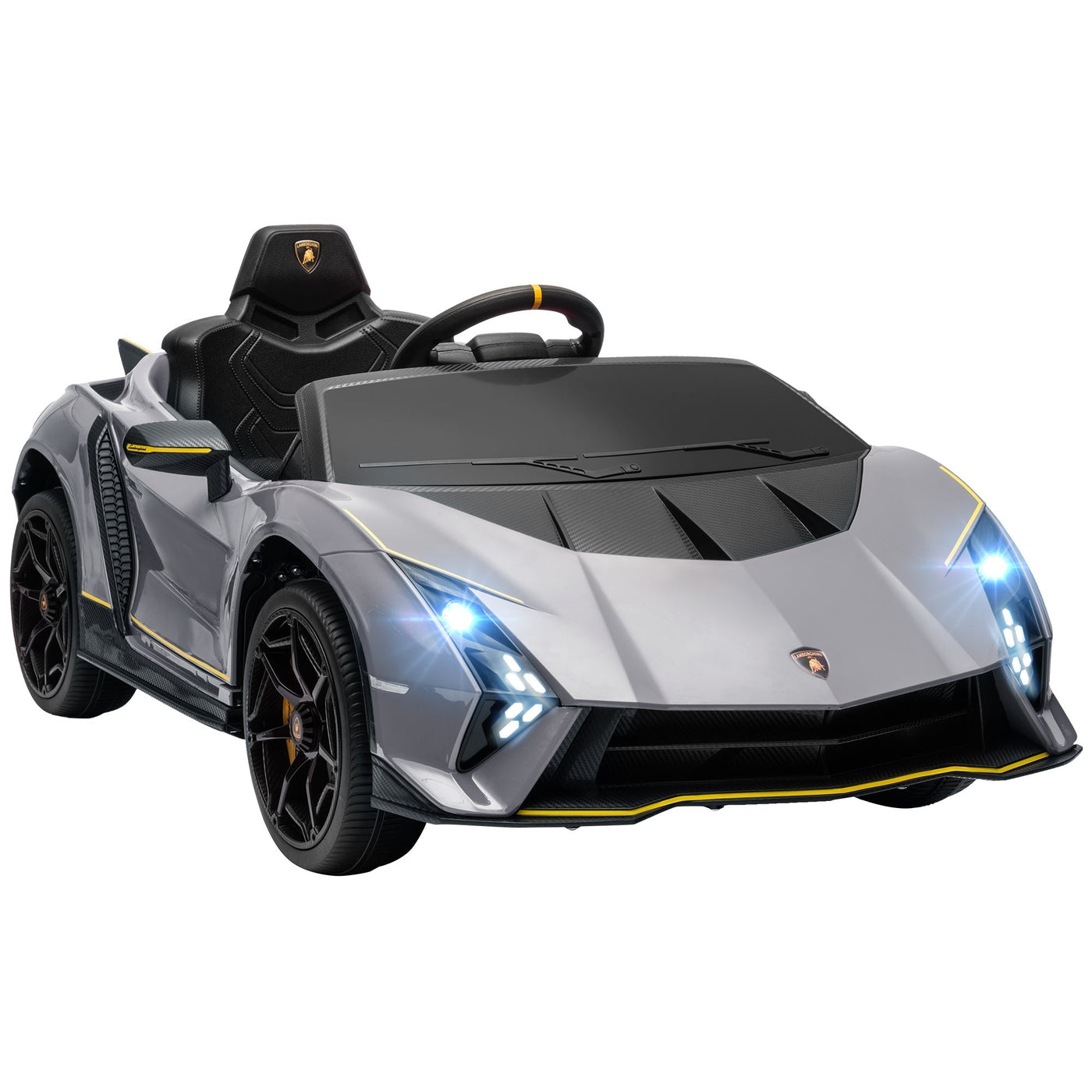 AIYAPLAY 12V Lamborghini Autentica Licensed Kids Electric Car with Remote Control, 4 Suspension Wheels, Soft Start, Grey - Grey