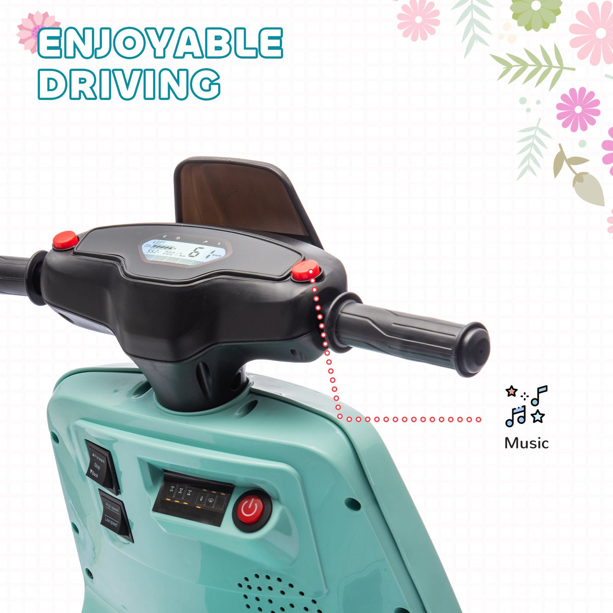AIYAPLAY 6V Ride on Motorbike, Kids Electric Motorbike w/ Headlights, Music, Training Wheels, for Ages 18-36 Months, Green - Green