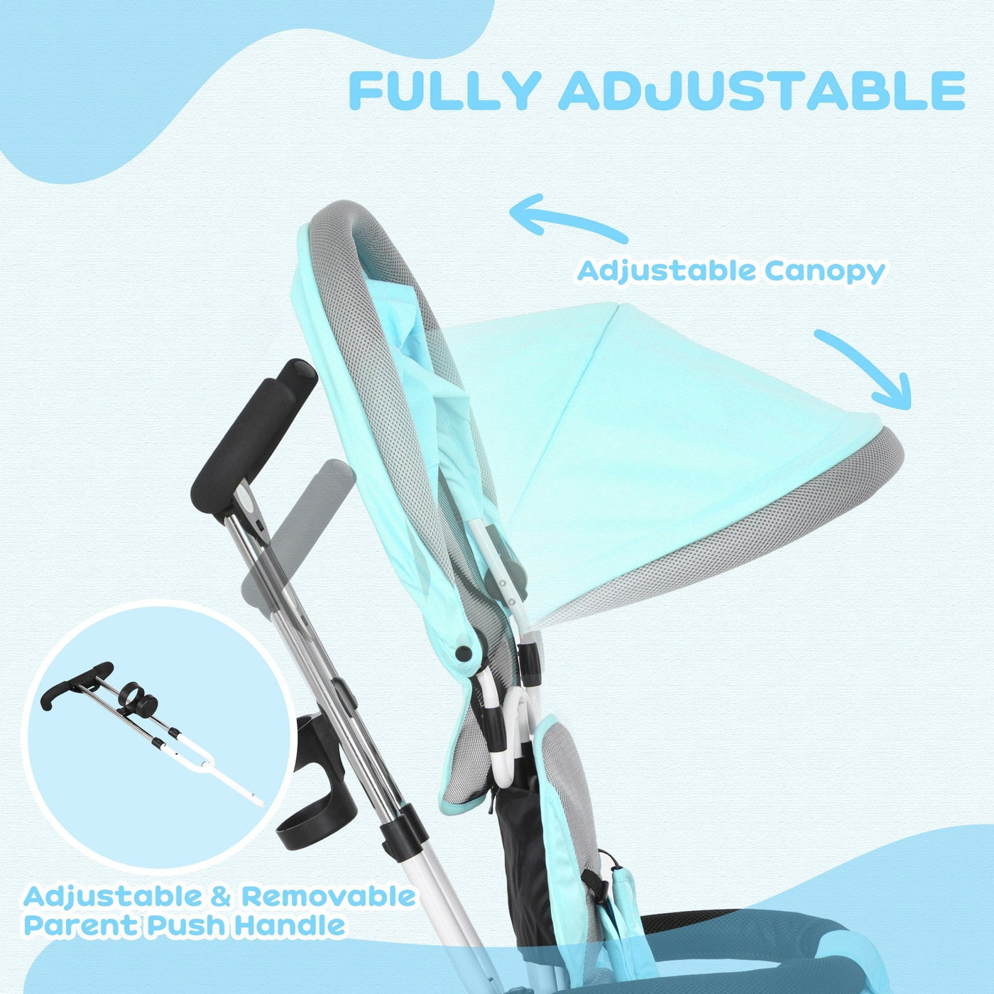 HOMCOM 6 in 1 Kids Trike Push Bike w/ Push Handle, Canopy, 5-point Safety Belt, Storage, Footrest, Brake, for 1-5 Years, Green - Green