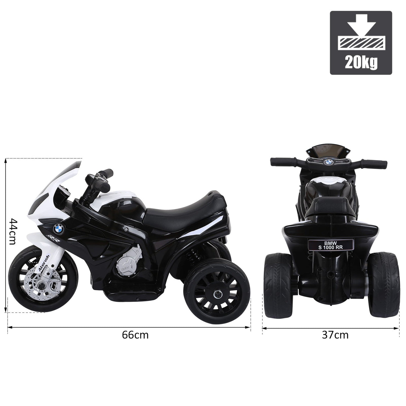 HOMCOM Electric Kids Ride on BMW Motorbike W/Headlights and Music, 6 V-Black