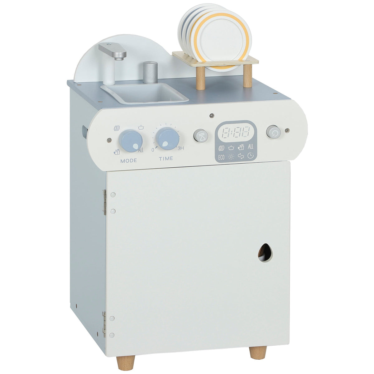 AIYAPLAY Wooden Dishwasher Playset, Kitchen Sink Toys with Faucet, Sink and Accessories, Gift for Boys Girls Toddlers - Blue