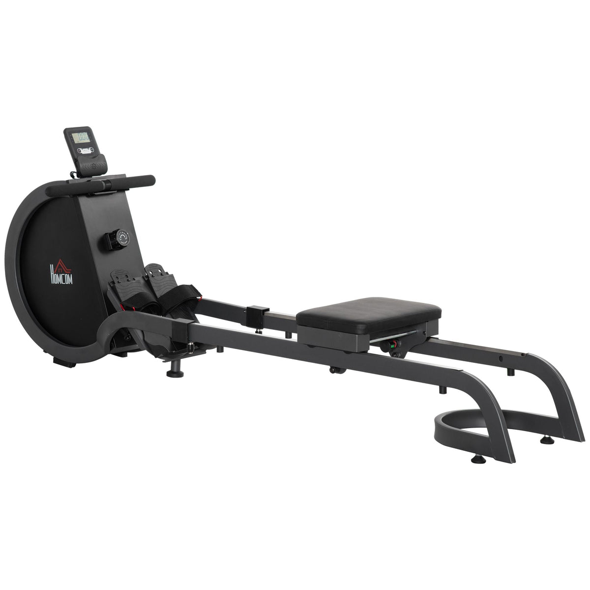HOMCOM Folding Rowing Machine with 16-Level Adjustable Magnetic Resistance, Aluminium Side Rail, Digital Monitor, Cardio Workout Rower, for Home, Gym, Office - Black