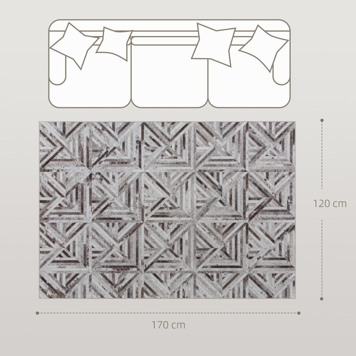 HOMCOM Modern Area Rug, Triangle Pattern Non-Slip Washable Rug, Chenille Floor Carpet for Living Room, Bedroom, Dining Room, Home Office, 170 x 120 cm, Brown - Brown