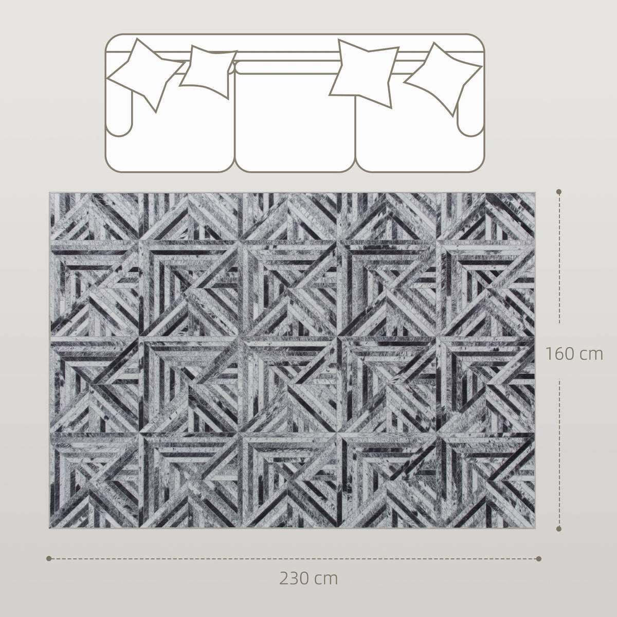 HOMCOM Modern Area Rug, Triangle Pattern Non-Slip Washable Rug, Chenille Floor Carpet for Living Room, Bedroom, Dining Room, Home Office, 230 x 160 cm, Black - Black