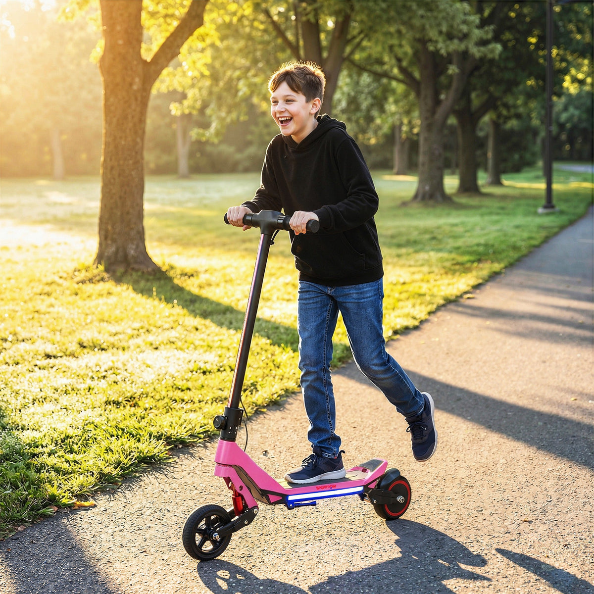 SPORTNOW Electric Scooter for Kids, Foldable E Scooter for Age Age 6+ with LED Display, RGB lights, Up to 16km/h, Pink - Pink