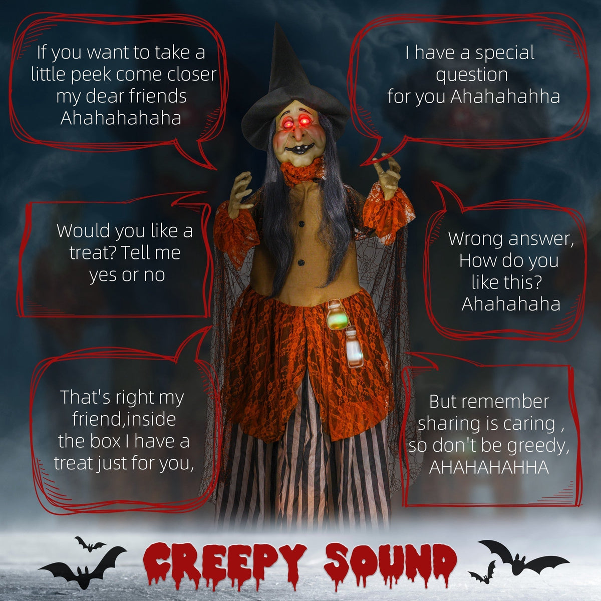 Unleash spine-chilling thrills with the HOMCOM animated Halloween prop, featuring a fat-faced witch with a glowing potion bottle on her...