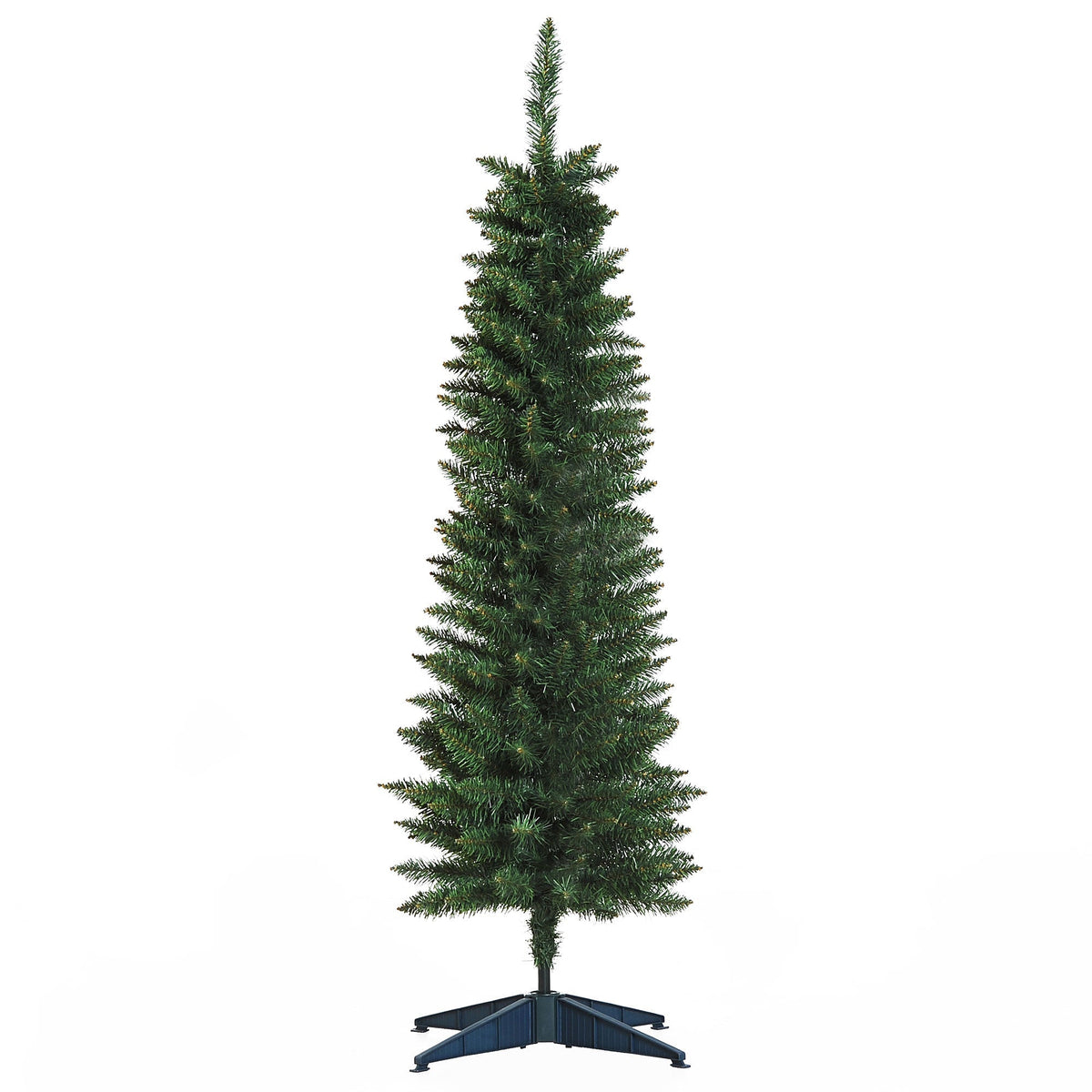 HOMCOM 5ft Unlit Artificial Christmas Tree, Pencil Slim Xmas Tree with Solid Stand and Realistic Branches, Green - Green