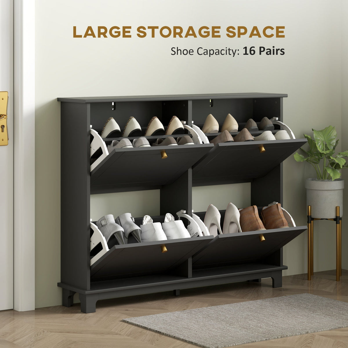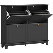 HOMCOM Narrow Shoe Storage Cabinet, Slim Shoe Cabinet with 4 Flip Drawers, Adjustable Shelves for 16 Pairs of Shoes, Black - Black