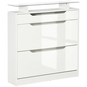 HOMCOM Shoe Storage Cabinet with Slide Out Drawer, 2 Flip Doors, Tempered Glass Top - White - High gloss