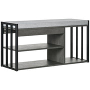 HOMCOM Shoe Storage with Seat, Upholstered Entryway Bench, Shoe Bench with 3 Open Shelves for Hallway, Grey - Grey
