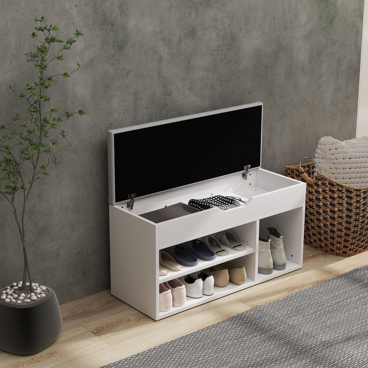 HOMCOM Shoes Cabinet Bench Hidden Storage Padded Seat Organiser Footwear Rack Hallway Cream White