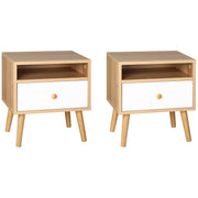 HOMCOM Bedside Table, Bedside Cabinet with Drawer and Shelf, Modern Nightstand, End Table for Living Room, Bedroom, Set of 2, Natural - Natural