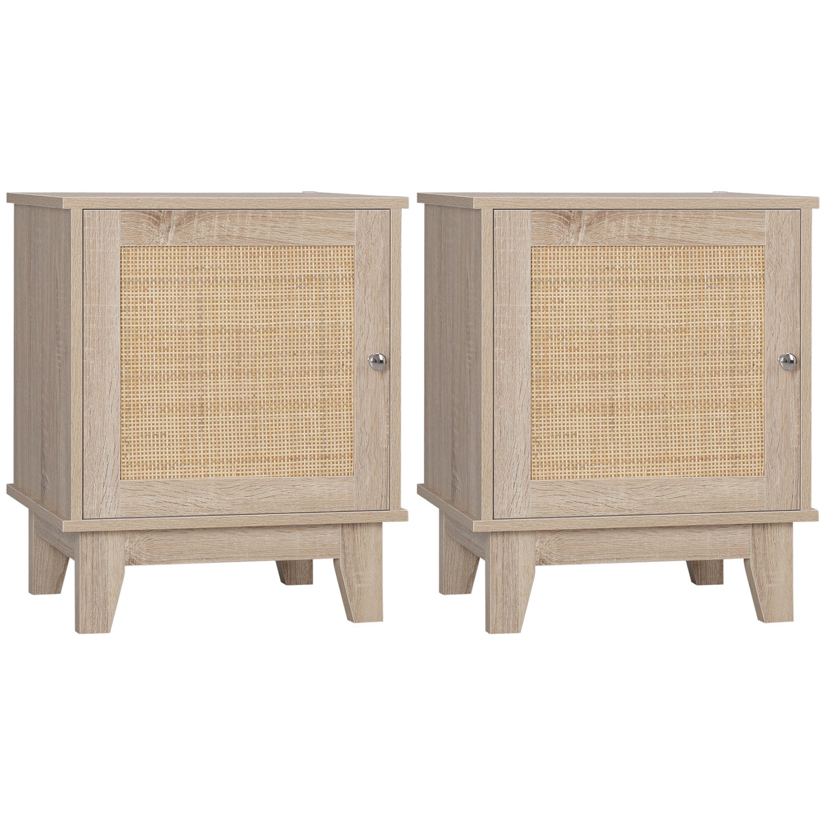 HOMCOM Bedside Table, Bedside Cabinet with Storage Cupboard, Side End Table with Rattan Element for Living Room, Bedroom, Set of 2, Natural - Natural wood finish