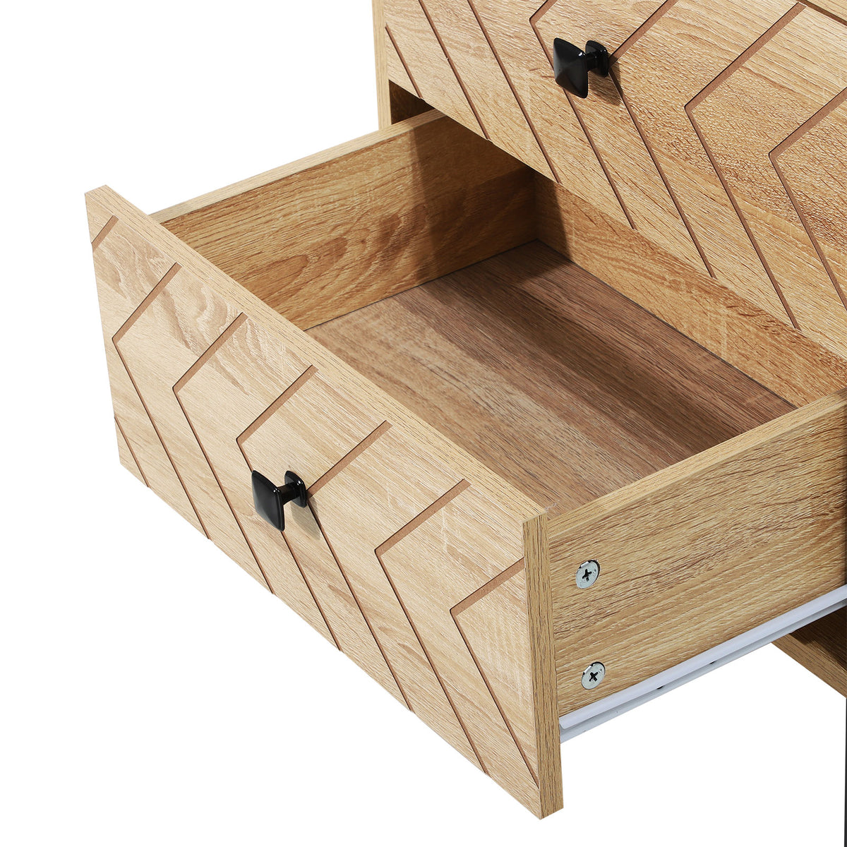 HOMCOM Bedside Table Nightstand Two-Drawer Bedroom Storage Unit Zig Zag Design with Black Metal Handles, Set of 2, Natural - Natural wood finish