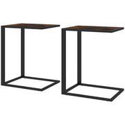 HOMCOM C-Shaped Side Table, Sofa End Table with Metal Frame, Accent Couch Table for Living room, Bedroom, Set of 2, Brown and Black - Brown