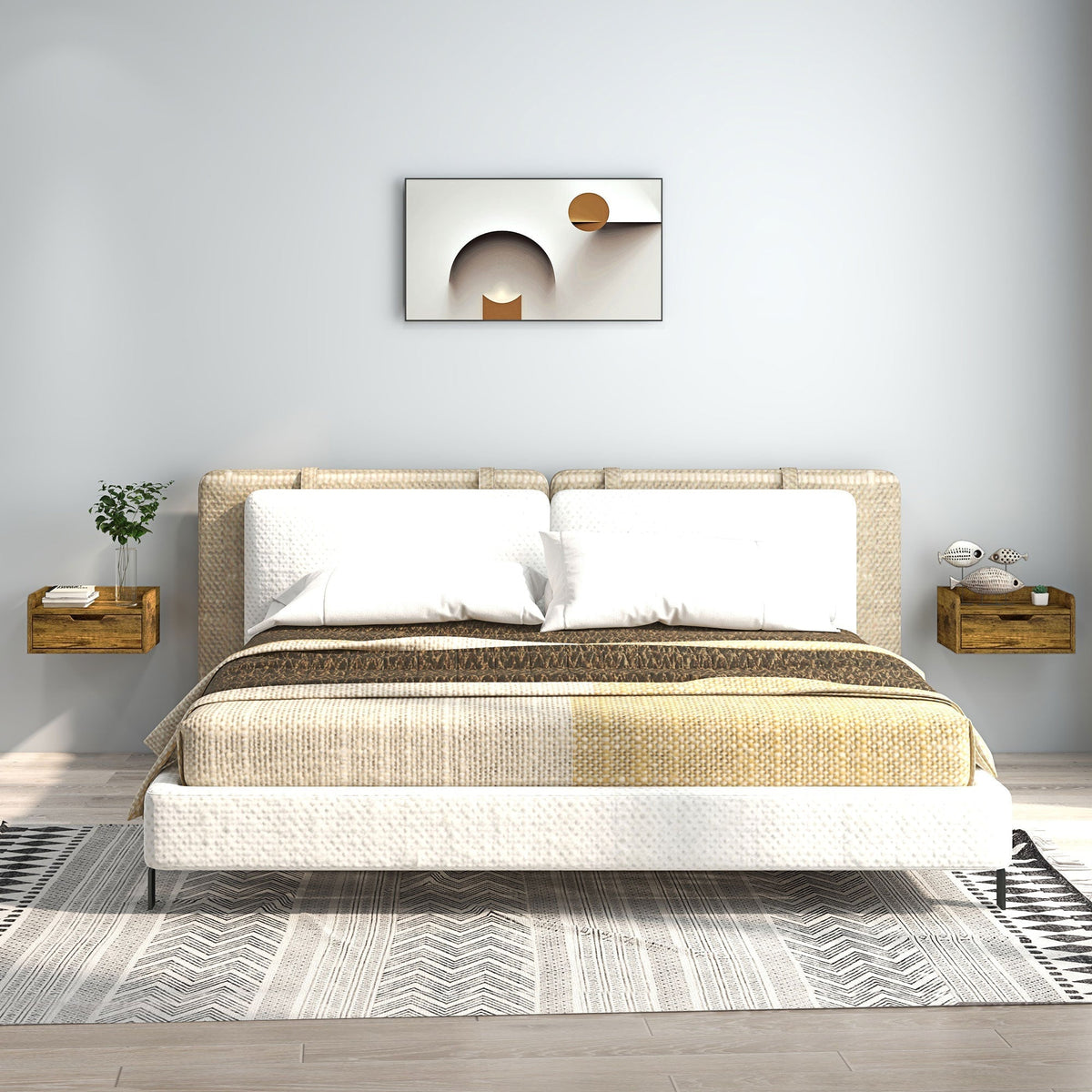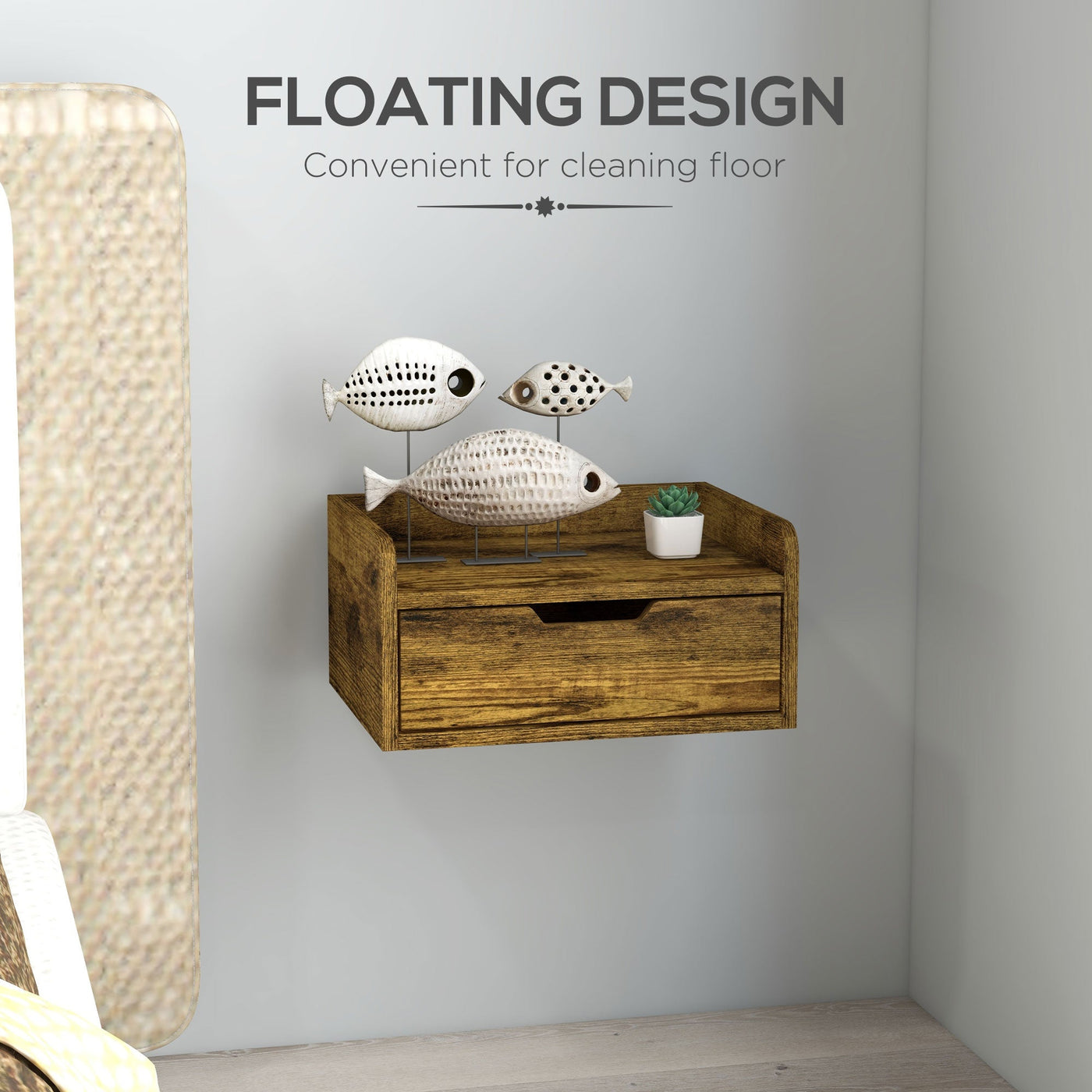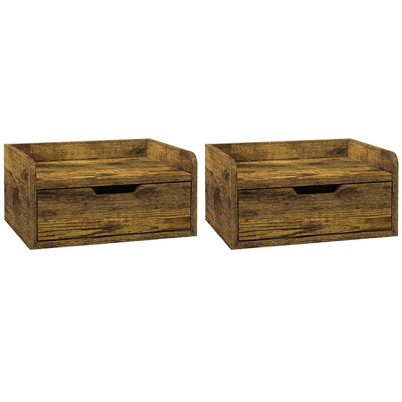 HOMCOM Floating Nightstand Set of 2 Wall Mounted Bedside Table with Storage Drawer for Bedroom, Rustic Brown - Rustic Brown