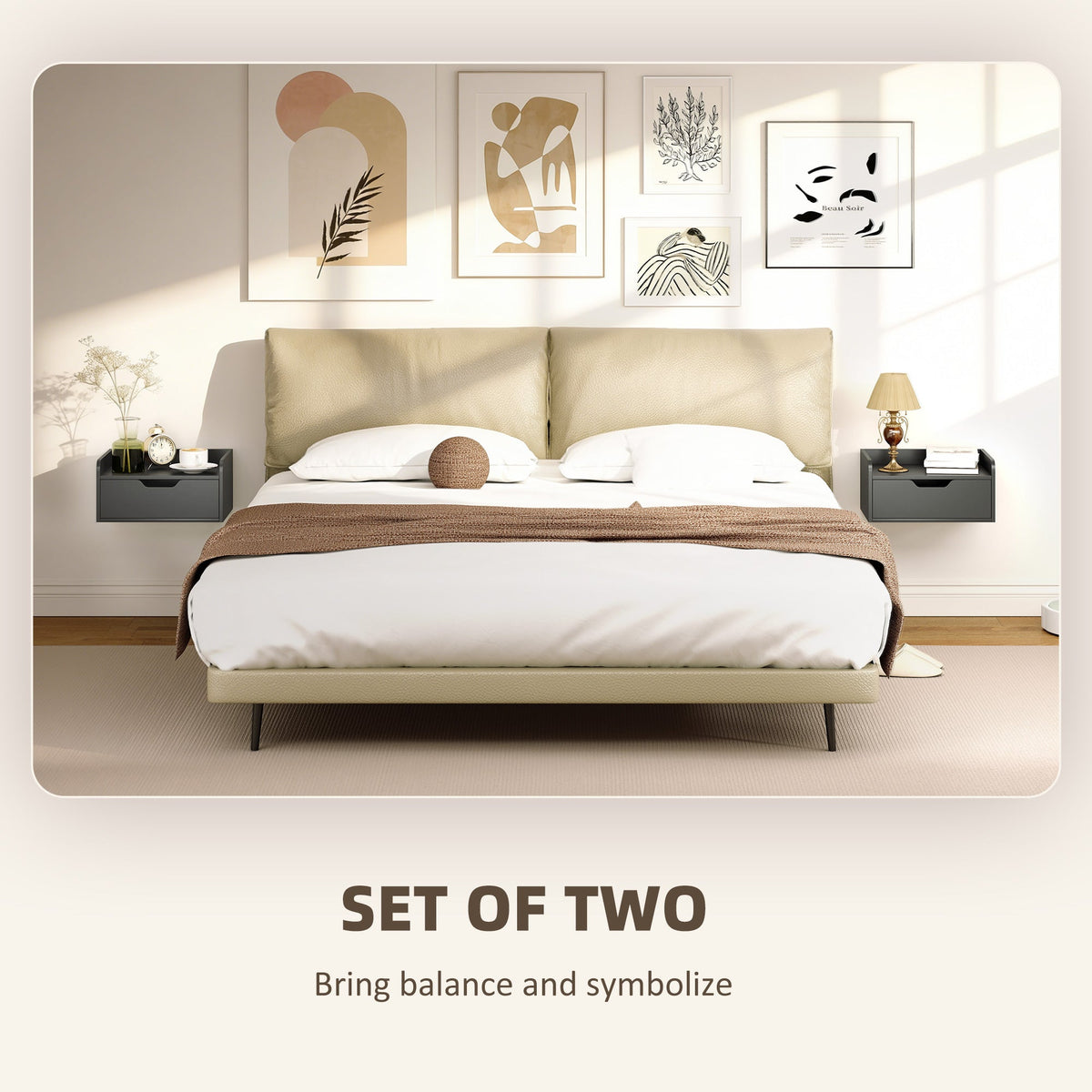 HOMCOM Floating Nightstands Set of 2, Wall Mounted Bedside Table with Drawer for Bedroom, Black - Black